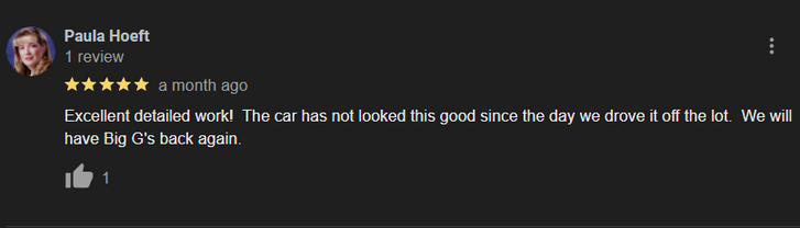 "Big G's Deluxe Details is a local business serving the madison county area of nebraska, proving premium auto detailing services that drive staraight to you, offering Top of the line interior and exterior services that won’t break the bank!